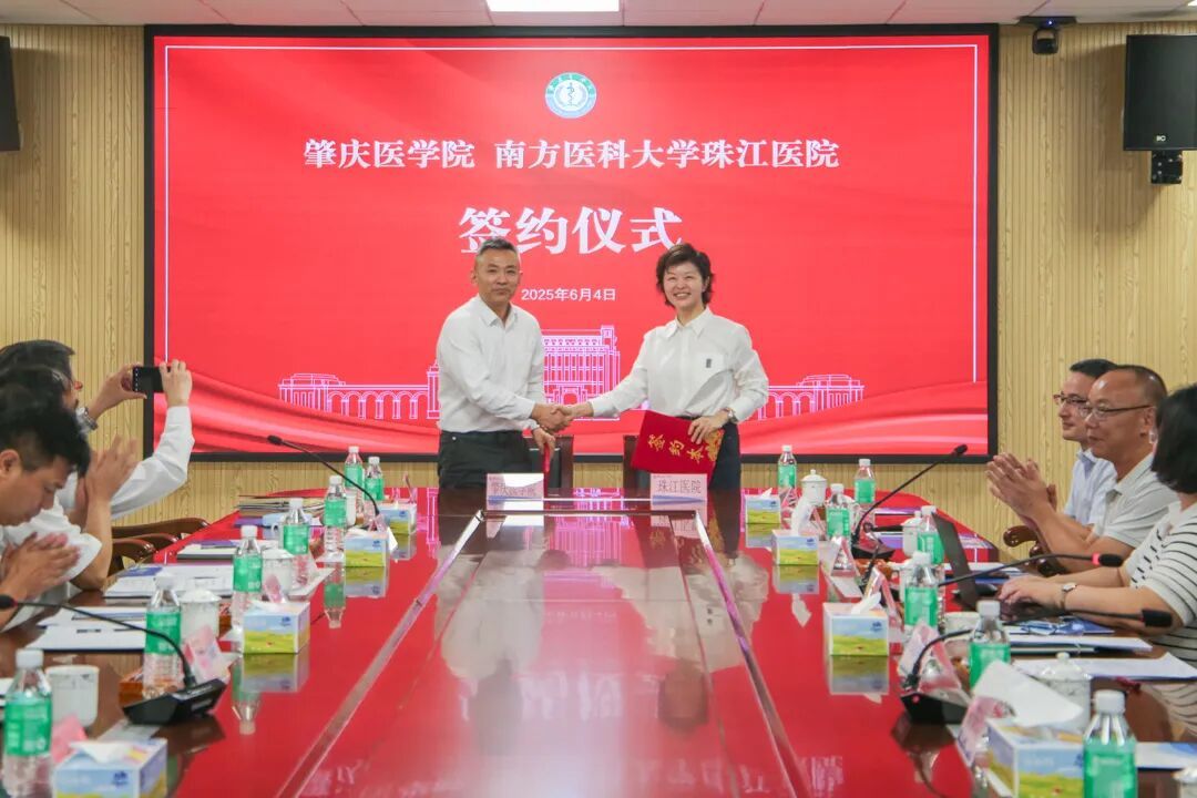 最后,双方共同签署了合作框架协议。珠江医院将助力肇庆医学院附属医院医疗水平提升、医疗骨干培训、教学基地建设、师资培训、高水平科研平台建设等,共谋医教协同发展新路径。